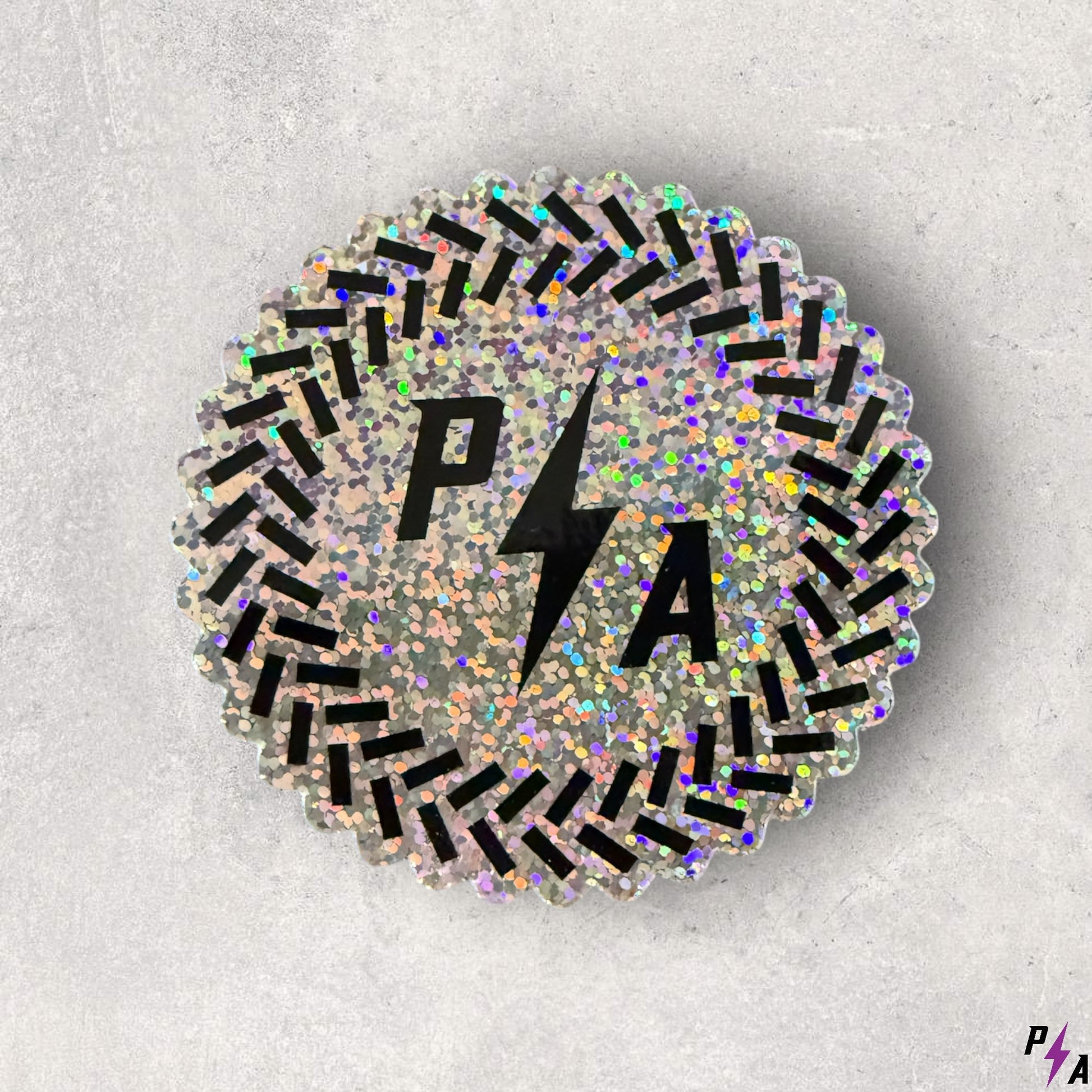 10) 1” by 2” P/A Monogram Logo inside of a Black Diamond on a Glitter background