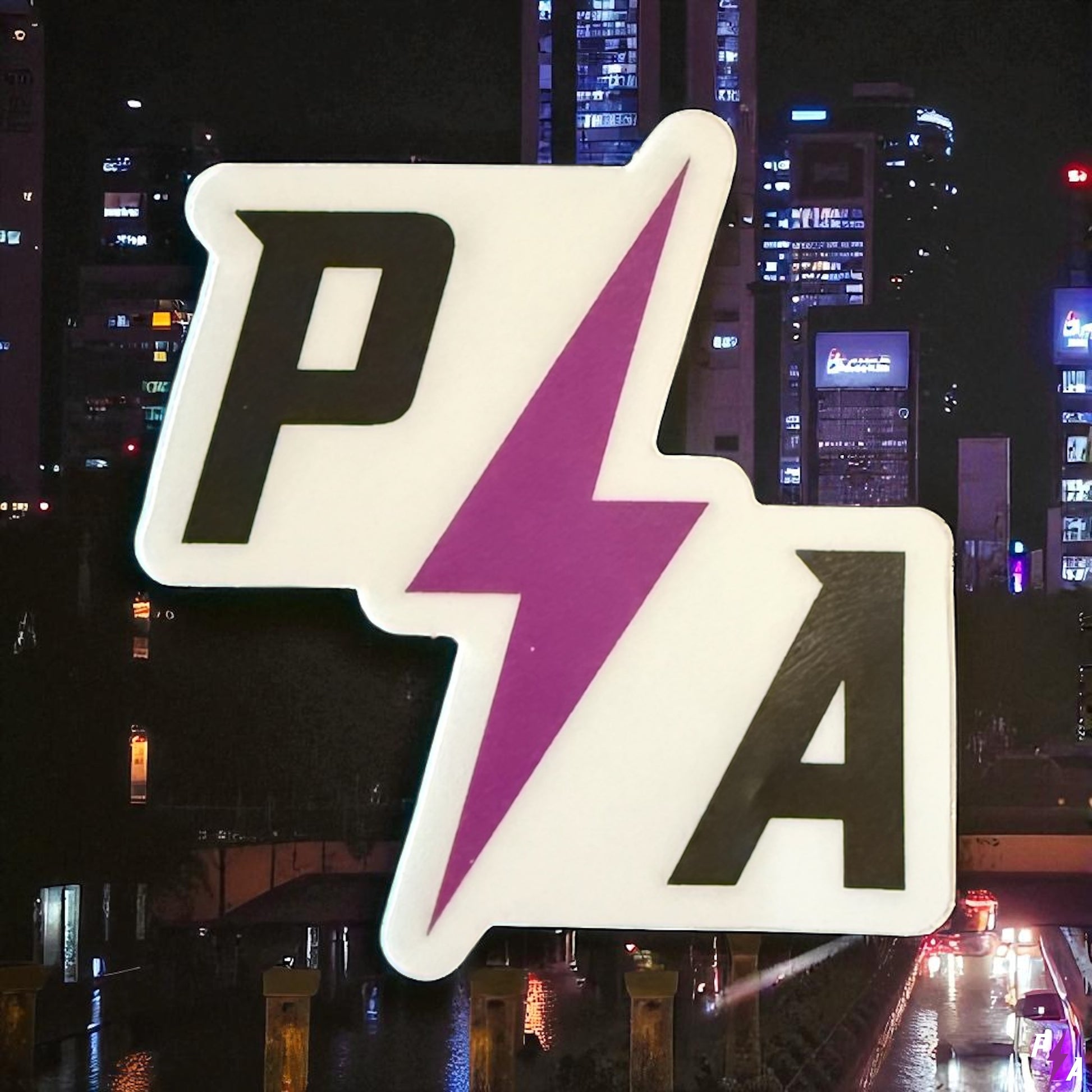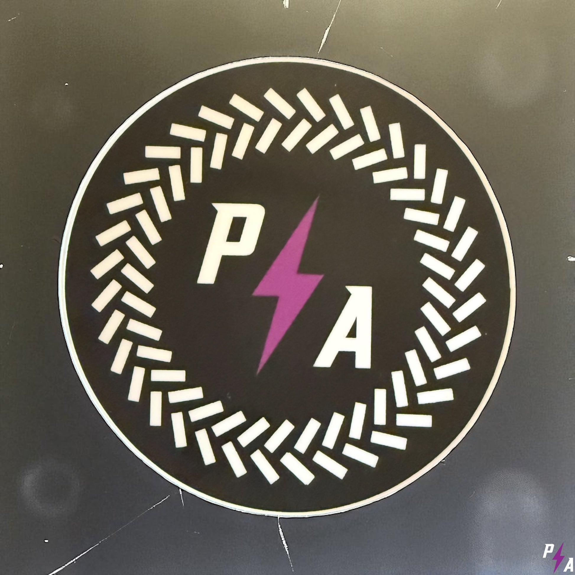 11) 1” by 1.75” P/A Monogram Logo die-cut on white background